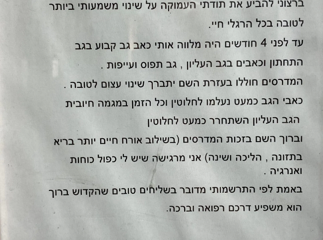לשמחתי היום אני יכול להגיד בוודאות שעזרתי להרבה מטופלים שלי לא להגיע לחדר ניתוח ואף שיפרתי להם את האיכות חיים באופן משמעותי